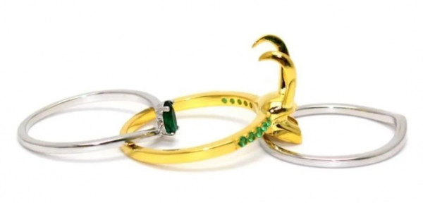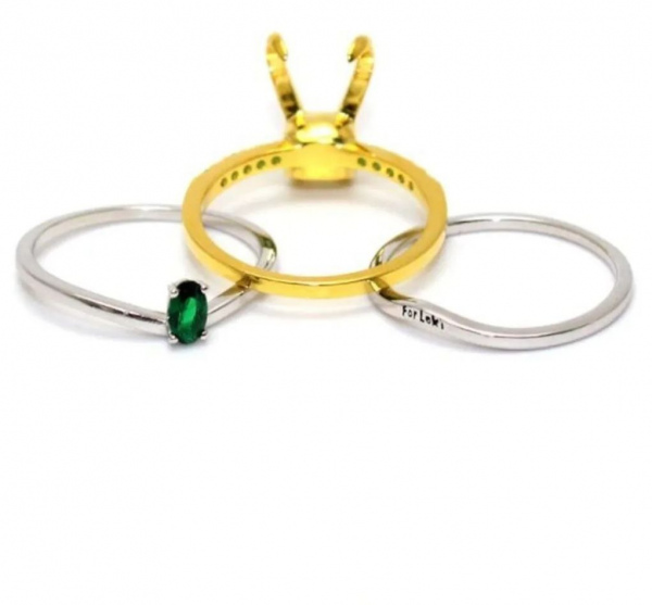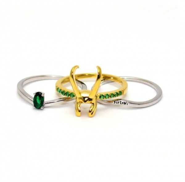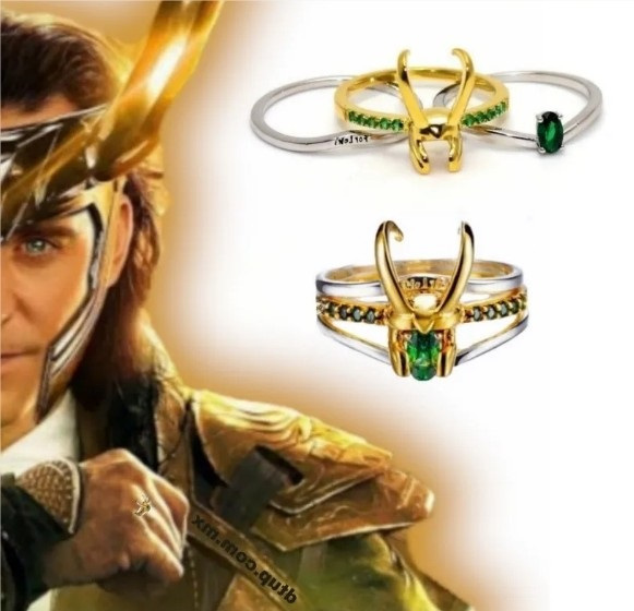 Anillo de coleccion Loki principe de las mentiras de Asgard y Sylvie princesa de Asgard, diosa de las mentiras de la famosa serie "Loki" de Marvel chapado en oro de 18 k simplemente hermosos!