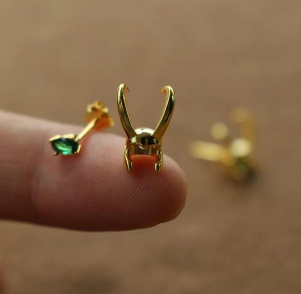 Aretes de coleccion Sylvie princesa de Asgard, diosa de las mentiras de la famosa serie "Loki" chapados en oro de 18 k simplemente hermosos!